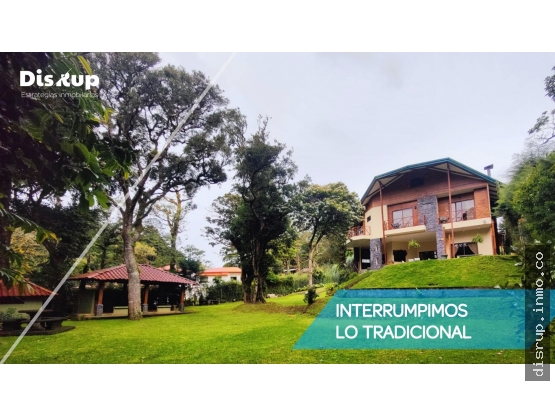 Exterior con amplias zonas verdes con rancho para BBQ, área para fogatas y sedero que lleva a un río puro y cristalino.